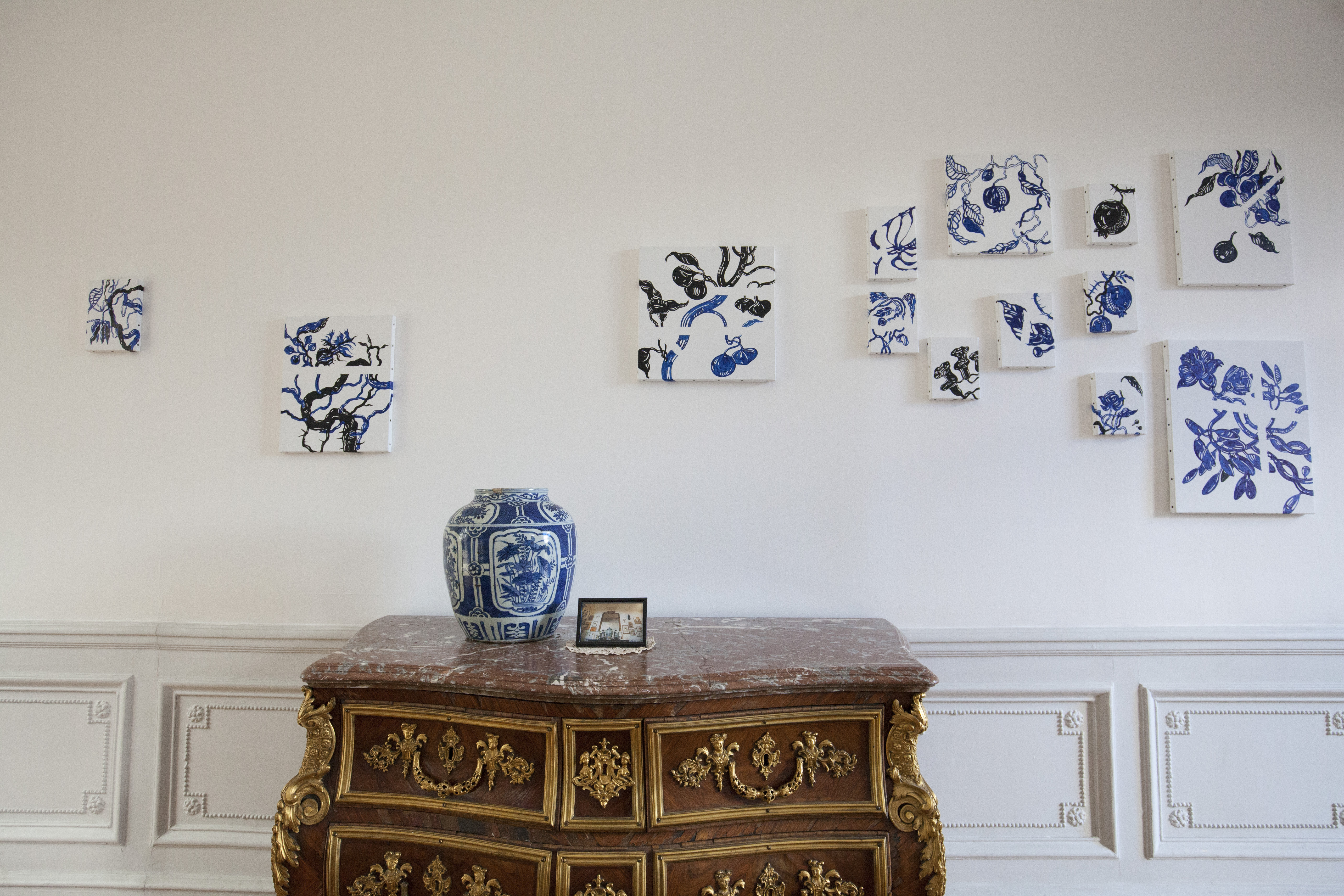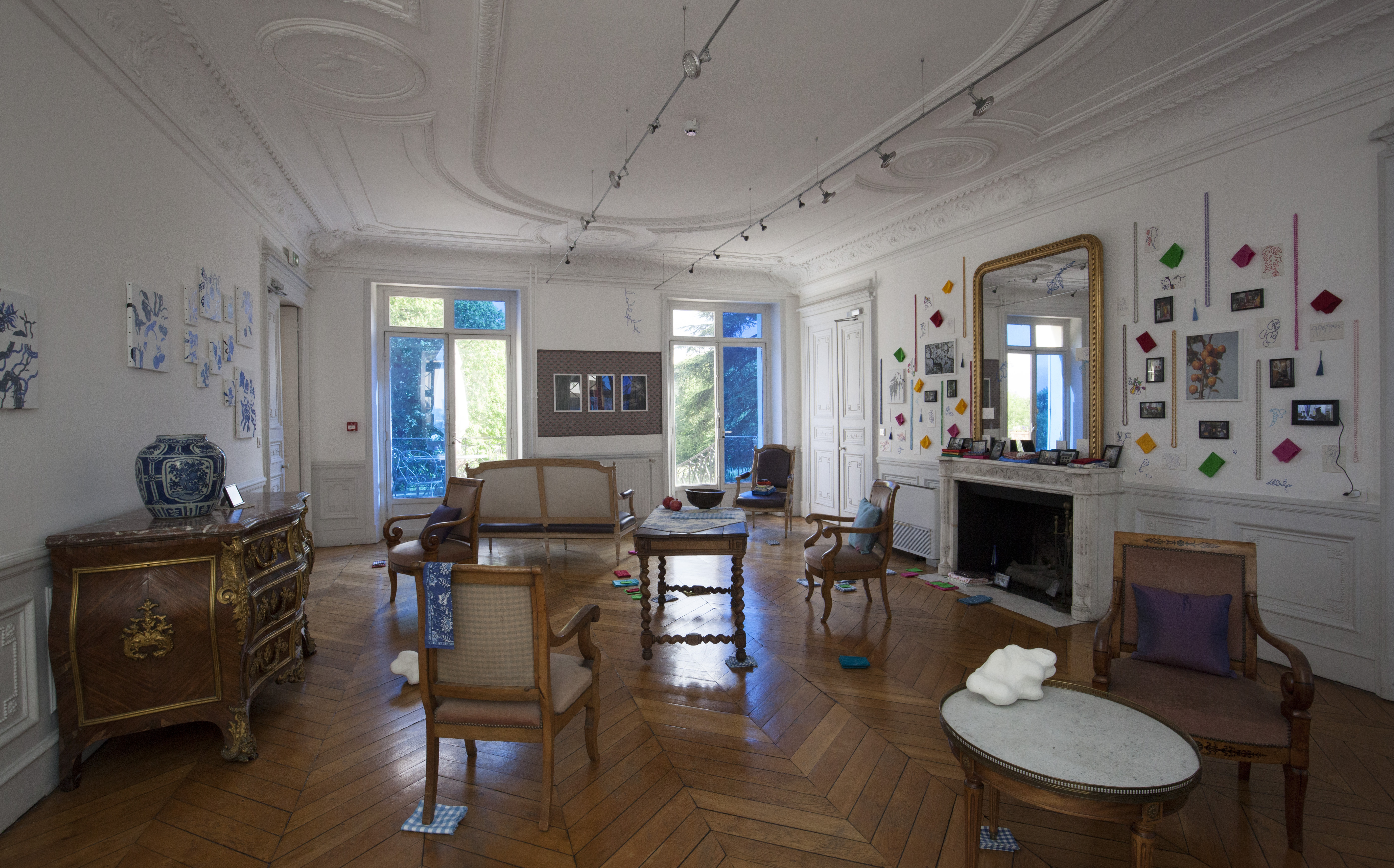 Home Away from Home est plus qu’une exposition, c’est une expérience dans laquelle Mario « habite » l’espace. Il prend possession de la Maison qui, à son contact, se transforme, se décore, s’habille et retrouve une dimension personnelle et domestique. Le grand salon, la galerie, deviennent ainsi des lieux de l’intime, ceux dans lesquels Mario D’Souza dévoile son univers : les maisons où il a vécu, en Inde ou, ici en France, en région Centre Val-de-France, sa famille, les objets qu’il met en scène dans ses intérieurs…